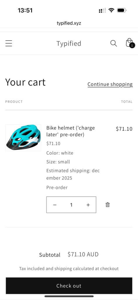 From the customer’s perspective, charge-later checkout looks nearly identical to a standard purchase. They add the pre-order item to their cart, proceed to checkout, and enter their payment information as usual.