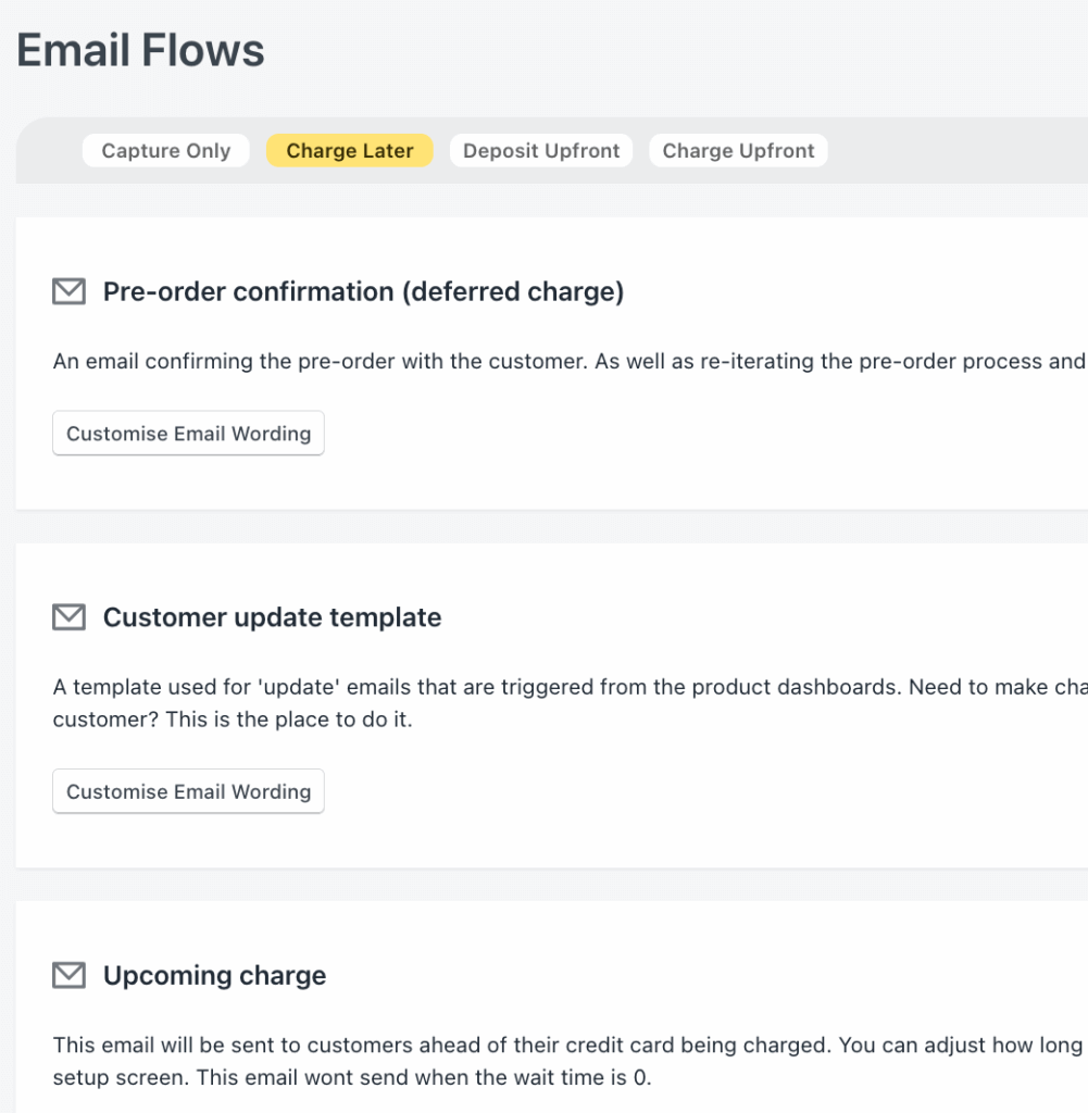 A self-service customer portal is invaluable for charge-later pre-orders. Customers should be able to: