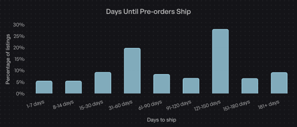 The data speaks clearly: 43.8% of pre-order listings use charge-later, making it the most popular method by a significant margin. Merchants prefer it for lead times beyond 30 days, and customers appreciate not paying months before receiving their products.