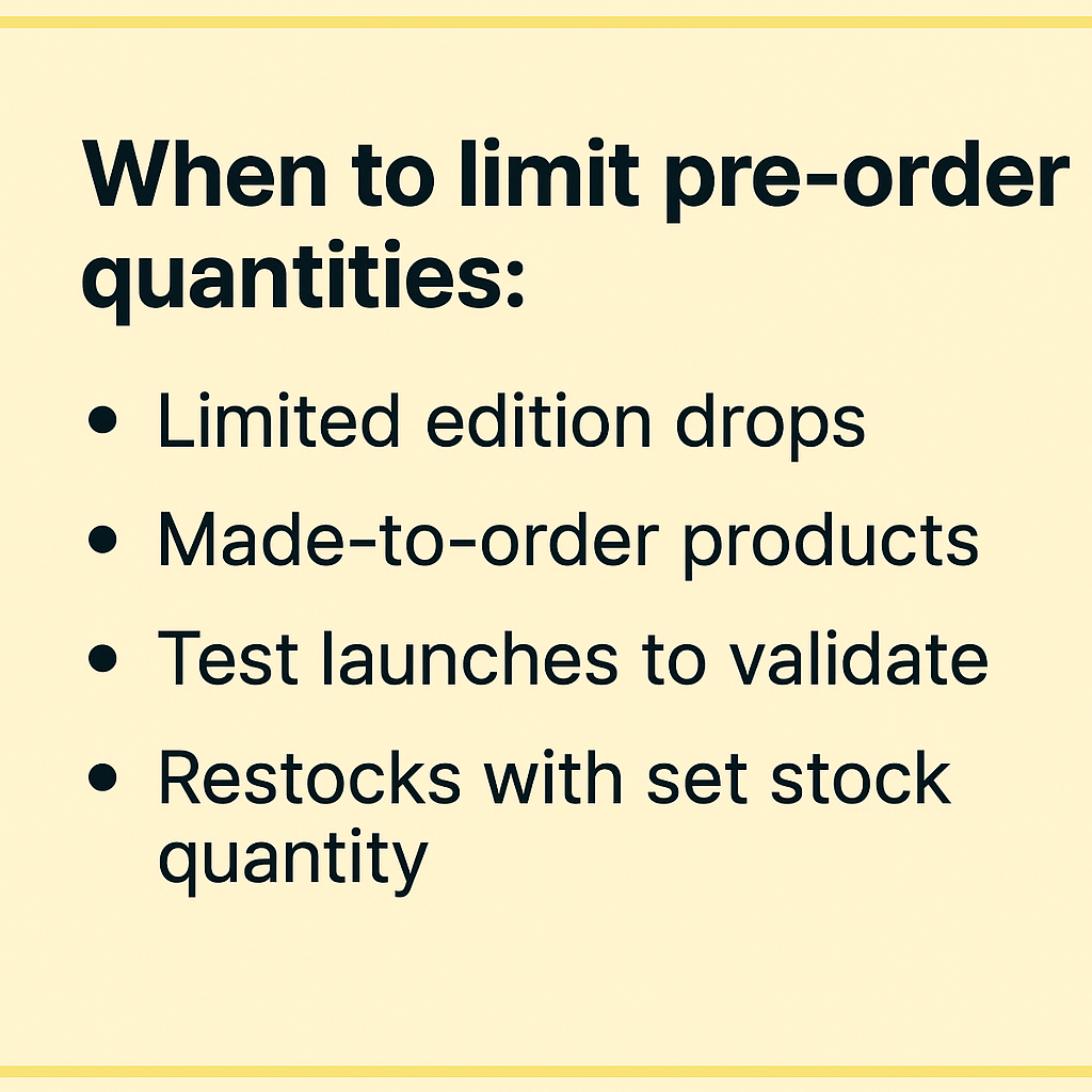 For ongoing product releases, restocks, and seasonal launches, native Shopify pre-orders integrate seamlessly with your existing store.