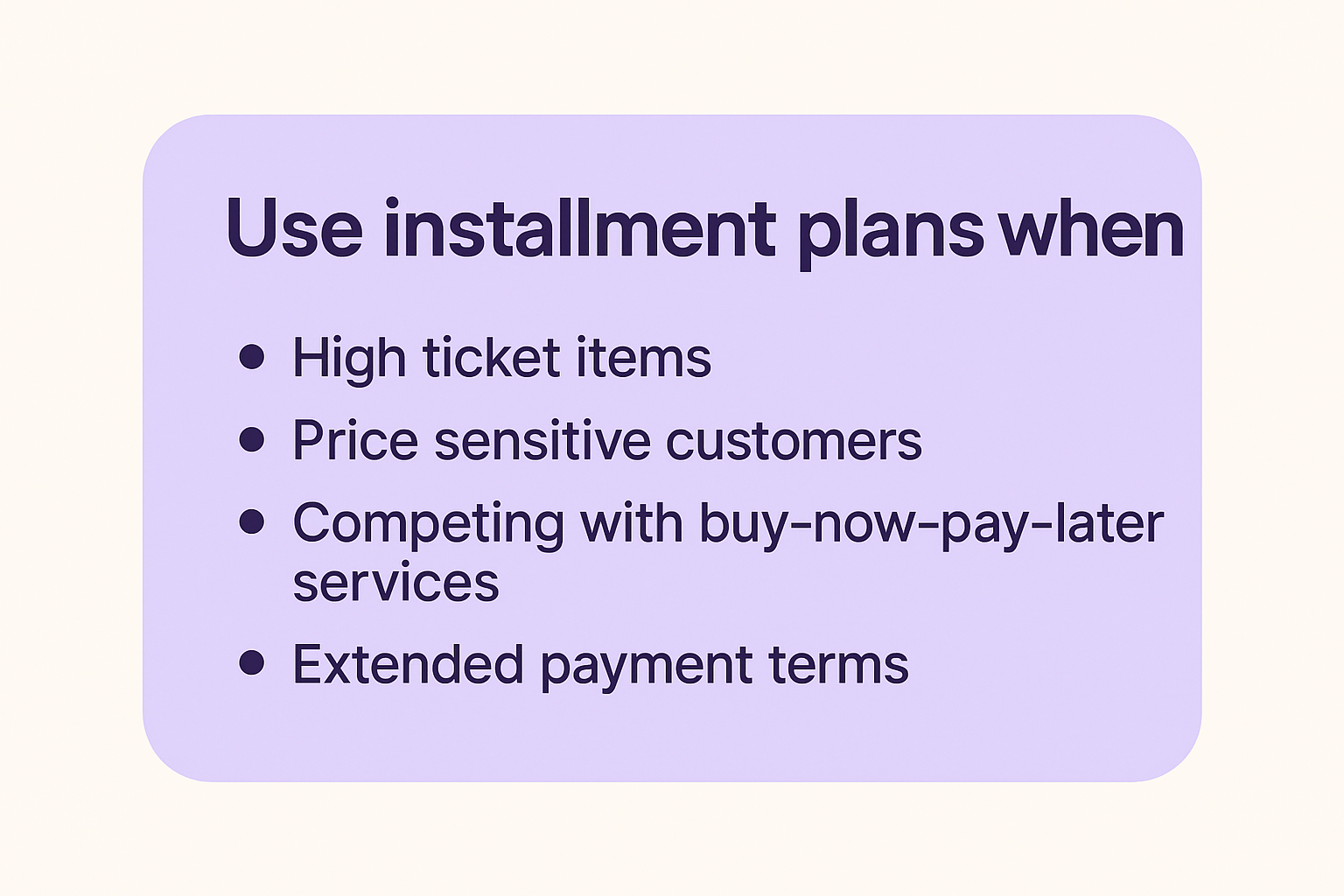 For higher-ticket items, deposit or installment plans work well. Let customers pay a portion upfront, then automatically collect the balance when you’re ready to ship. Consider offering tiered pricing options or the ability to pay early for additional benefits like free shipping.
