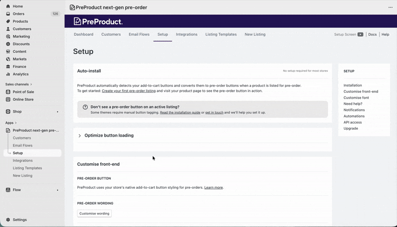 Note: This feature is only compatible with setups using charge-later, deposit-upfront, or charge-upfront pre-orders. It does not apply to capture-only pre-orders.