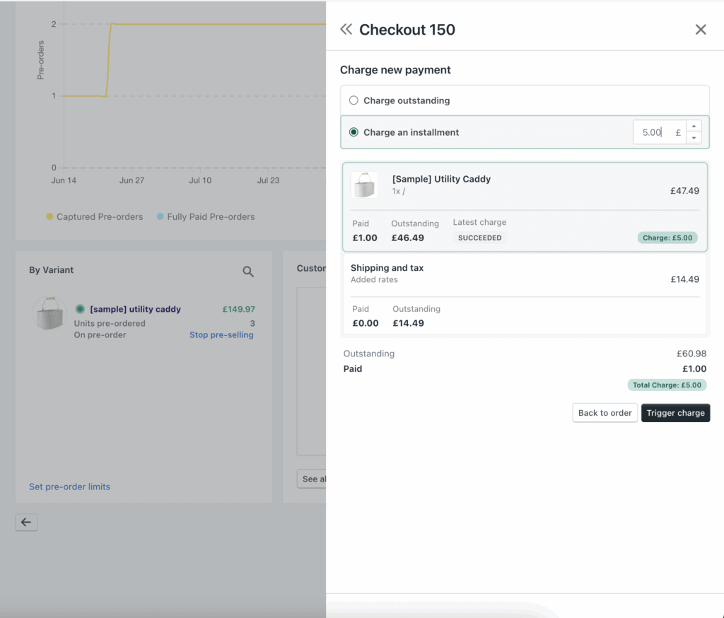 Both Shopify Plus and non-Shopify stores can use PreProduct to charge ad-hoc installment payments. These can be triggered multiple times until the order is fully paid.