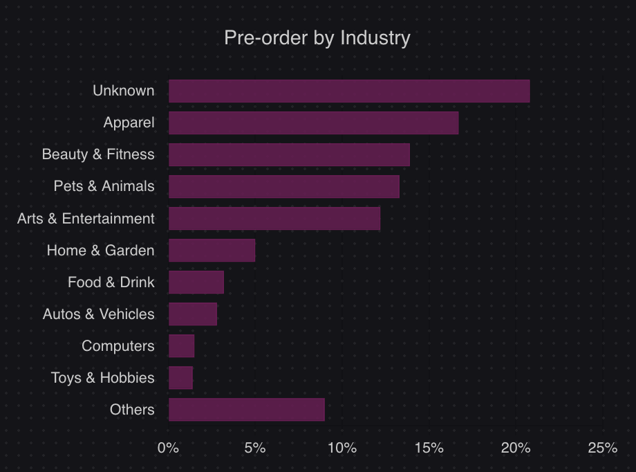 Pre-orders are common across ecommerce, not just gaming and entertainment. According to data from 1 million+ pre-orders processed through PreProduct, the top industries using pre-orders are apparel (16.7%) and beauty and fitness (13.9%). Fashion brands, tech companies, beauty labels and food producers all use pre-orders to take orders before stock arrives.