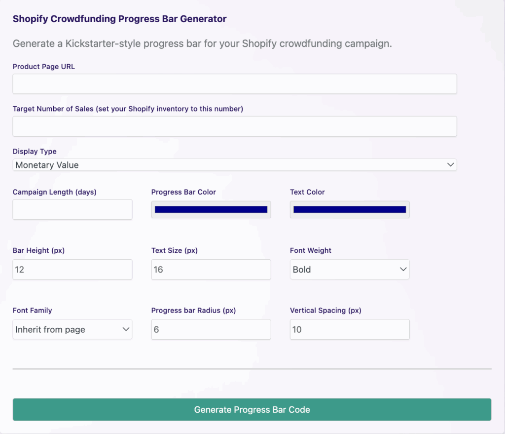 - [ ] Add a crowdfunding-style progress bar (optional)