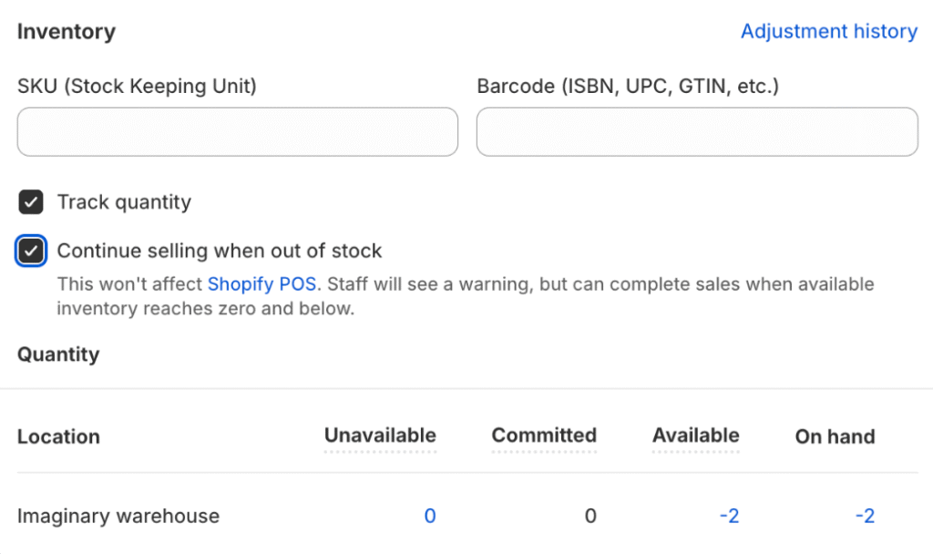 The Shopify “Continue Selling When Out of Stock” Setting