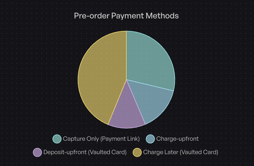 - Capture-only (payment links): 28.7% of pre-orders