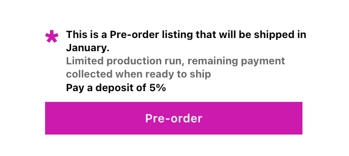 “Pre-order” button: Replace “Add to Cart” with “Pre-order Now” or similar. This immediately signals that the product isn’t shipping today. Customers who miss this detail often create support tickets or cancellations later.
